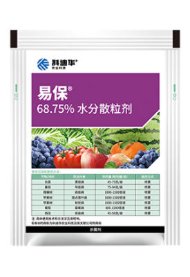 易保®含有两种不同作用机理的化学成分,针对作物的病害产生预防的功能。本产品为保护性杀菌剂,在病害未侵染前叶面喷施,药效发挥好。本产品中有效成分之一噁唑菌酮,具有亲脂性,喷施作物叶面上后,有易粘附、耐雨水冲刷之特性。