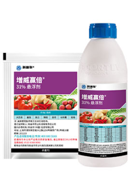 增威赢倍®是增威®系列首个复配型杀菌剂,其中增威®(氟噻唑吡乙酮)具有独特的作用位点和全新的作用机理,通过对氧化固醇结合蛋 白(OSBP)的抑制达到杀菌效果。其对病原菌具有保护、治疗和抑制产孢作用,对卵菌纲病害具有优异的杀菌活性。 噁唑菌酮通过阻断呼吸链电子传递,使细胞线粒体失活,切断能量供应达到杀菌效果。其对卵菌纲病害及早疫病等具有优异的杀菌活性。 增威赢倍®可以快速被蜡质层吸收,具有优秀的耐雨水冲刷作用。同时具有内吸向顶传导作用、保护新生组织的特点。